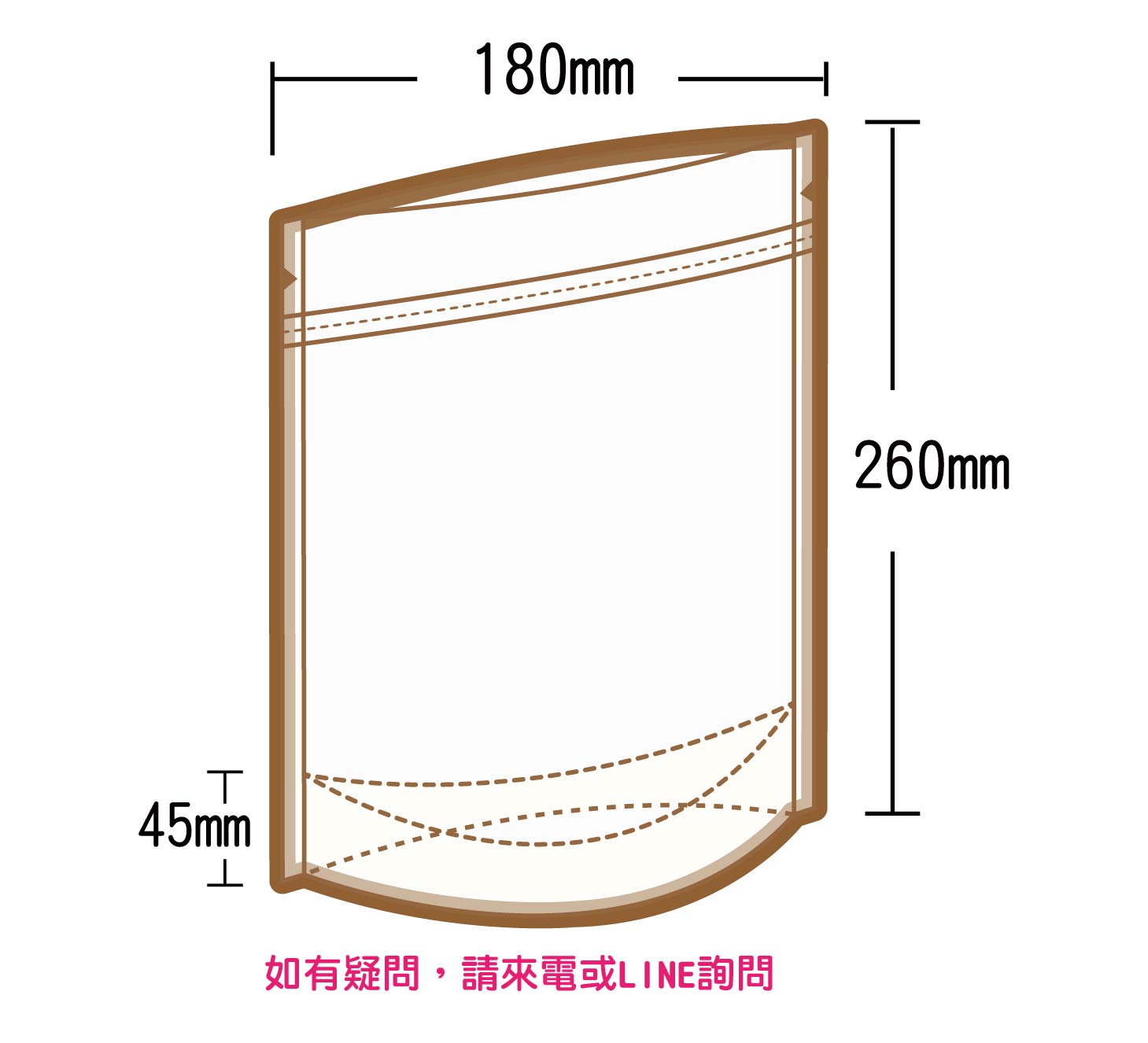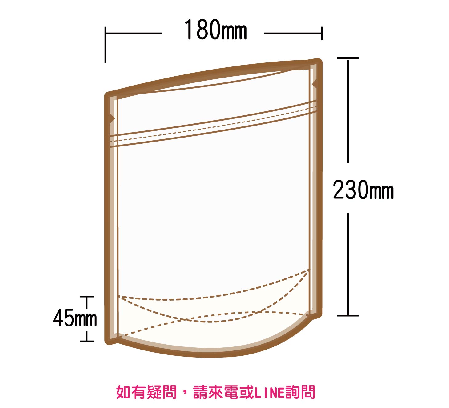 夾鏈立袋U底 W180xH230+45mm(BMKPETPE90)(二分之一磅)
