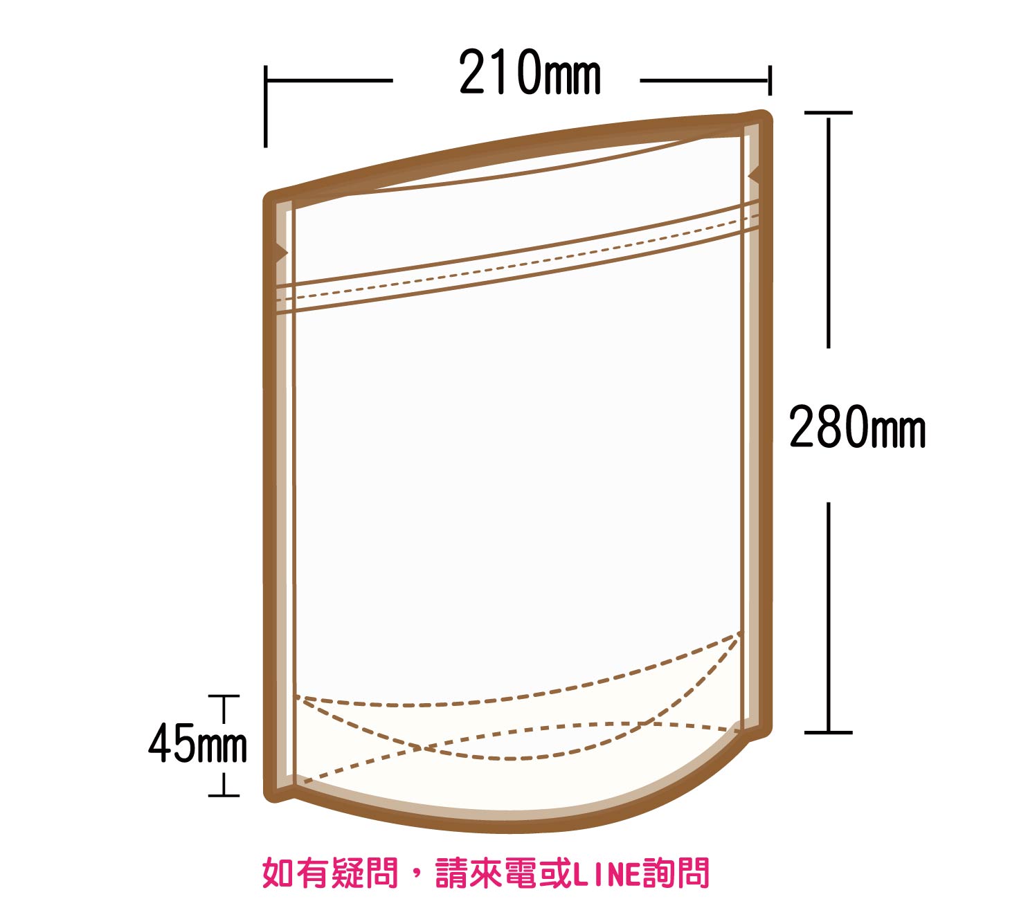 夾鏈立袋U底 W210xH280+45mm(BMKPETPE90)(大1斤)
